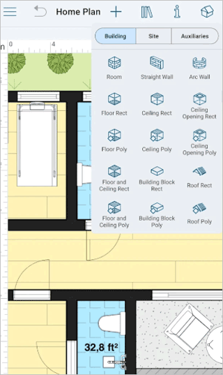 4、应用将自动激活新楼层或屋顶,要编辑另一楼层或屋顶,请在检查器的楼层部分敲击其缩略图。