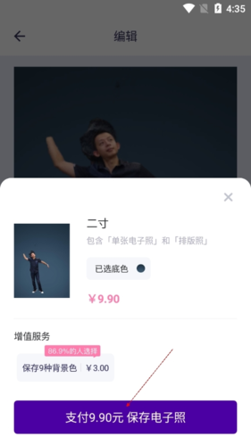 最美证件照制作中的照片制作功能都是需要付费的,根据用户对照片的要求不同,收取的价格也打不相同,因此不知道怎么进行付费的用户可以使用下方的操作步骤来进行操作。