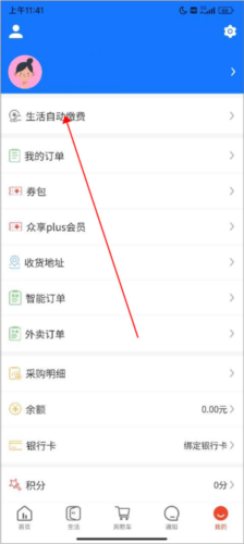 2、在我的页面中找到生活自动缴费。