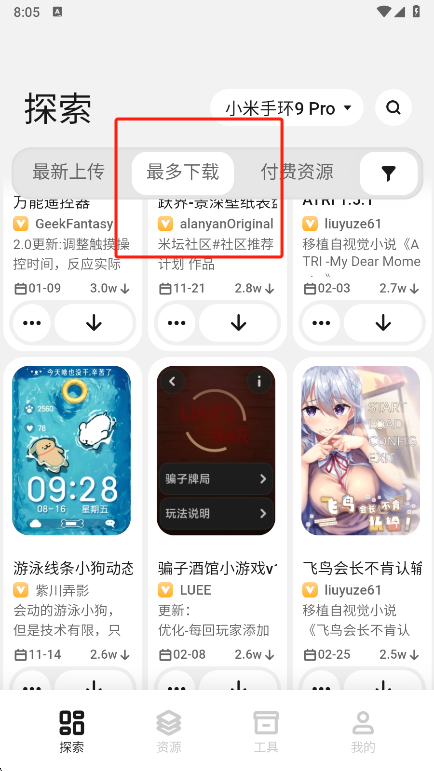 2、您可以选择最多下载,看看大家都喜欢的表盘