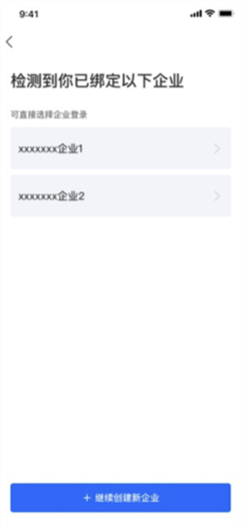 3、如该员工已绑定多个商旅账号,会进行二次验证,此时可继续点击创建新企业。