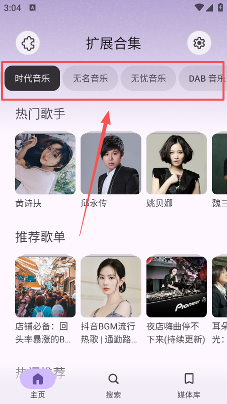 2、通过顶部的栏目能够切换各种拖拽音乐源