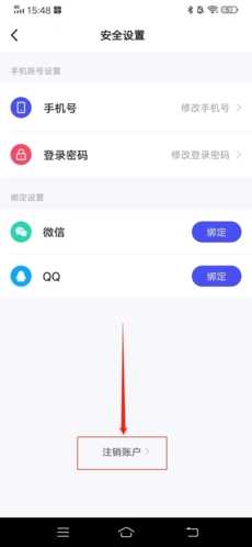 2、在安全设置的下方,我们就能看到“注销账号”的选项了,点击它;
