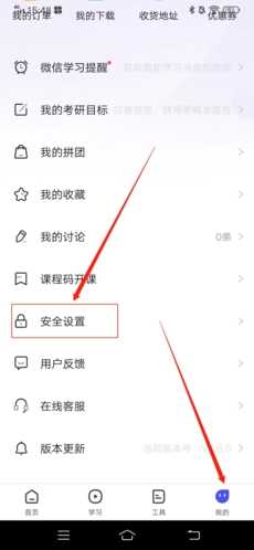 1、进入APP后,首先点击右下角“我的”,将页面下拉,找到并点击“安全设置”;