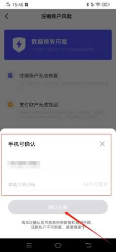 5、之后再通过注册手机号获取验证码并输入,最后点击下方的“确认注销”;