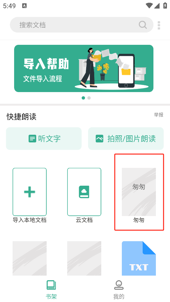 3、之后在书架打开导入的文档即可开始听书。