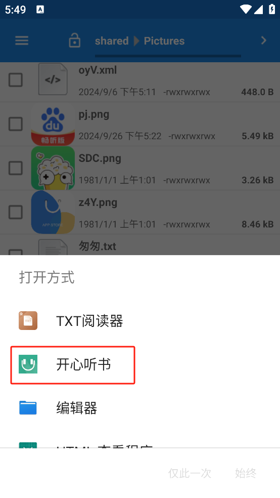 2、使用开心听书打开阅读文件