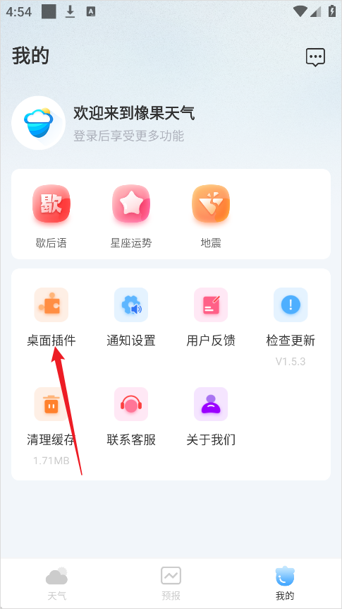 1、打开橡果天气App后,点击右下角的【我的】进入个人中心;