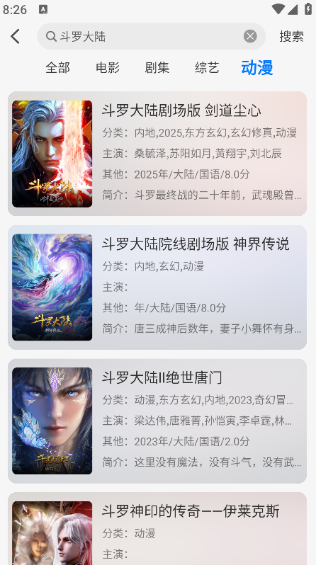 当然,大家也可以直接在搜索要看的动漫,比如斗罗大陆,有多个下拉推荐;