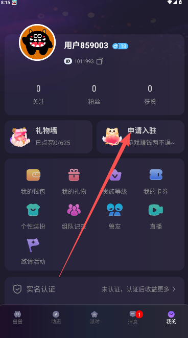 4、来到使用页面,点击我的信息主页选择申请入驻。