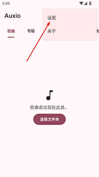 1、打开Auxio播放器,点击右上角的三点按钮,选择设置