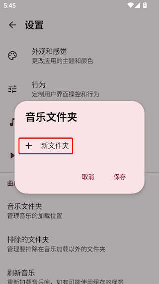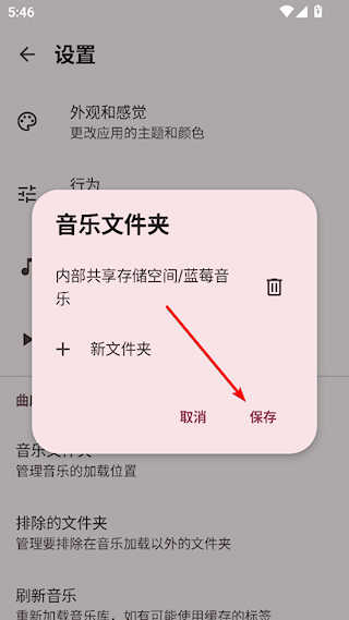 2、找到音乐文件夹选项,点击进行设置
