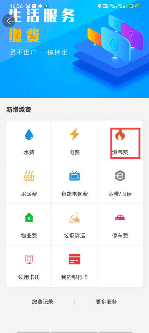 2、比如,点击燃气费。