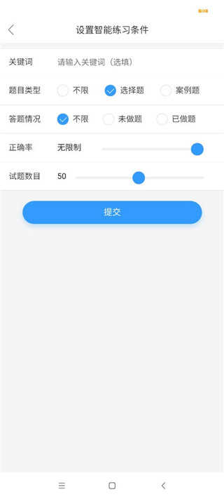 3、设置好联系条件后,点击提交按钮,您将进入答题模式;在这个模式下,您可以进行各种练习题,提升自己的答题能力;