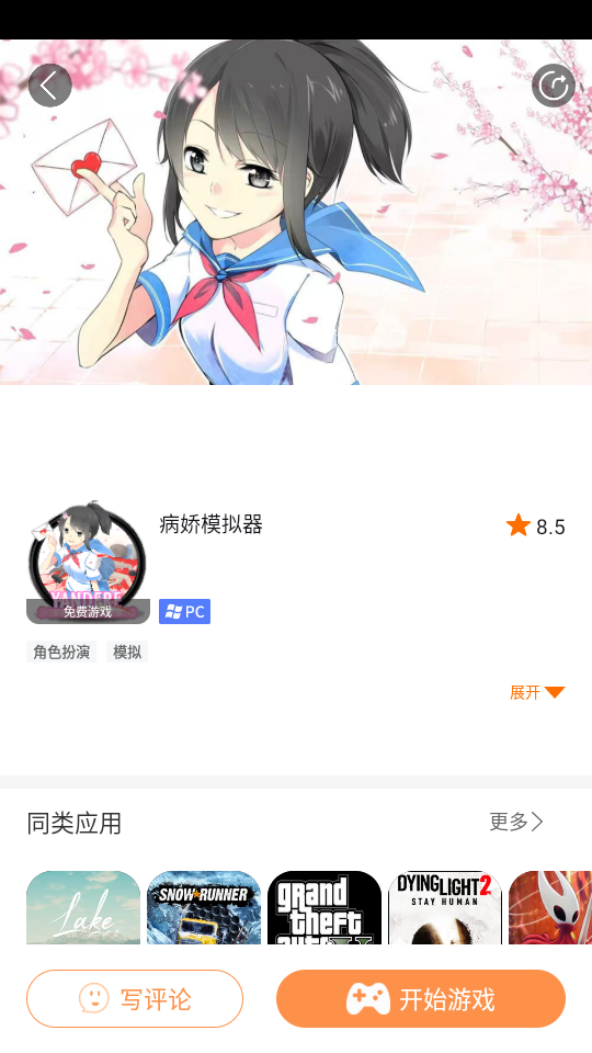 3、任意选择一款喜欢的游戏,这里小编以“病娇模拟器”为例。