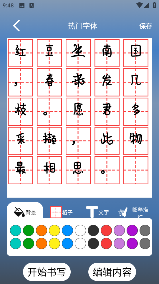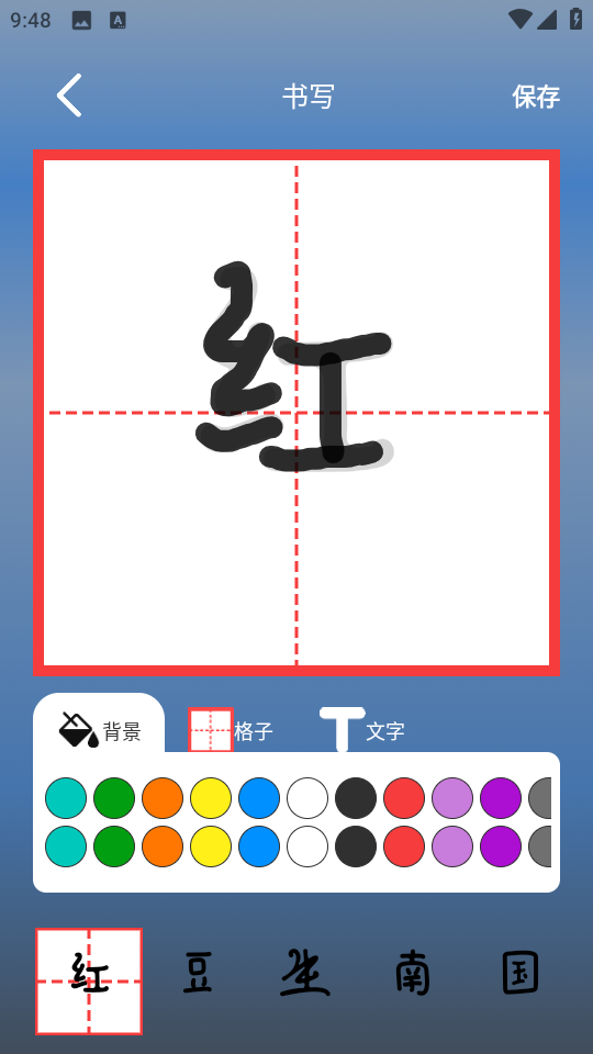 2、支持各种练字纸:方格帖、田格帖、米格帖、拼音田格帖、米格帖以及各种英文帖