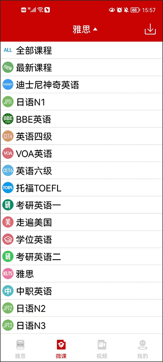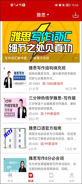 2、用户还可以在这里观看微课视频,由专业的导师提供了微课视频教程,包含了如何写作文、练习口语、背单词等等。