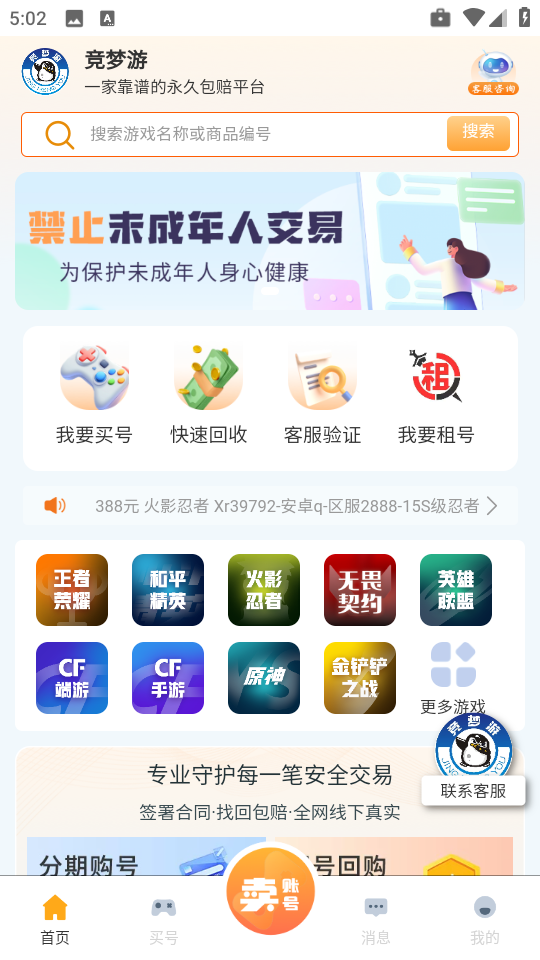 竞梦游是一家专业且值得信赖的游戏账号交易平台,旨在为广大游戏玩家提供多种服务和产品,覆盖了众多热门游戏。可以带给用户不一样的使用感受,全新的体验,交易方式安全可靠。还可以和玩家一起进行互动哦,支持线上卖号等等一些操作,竞梦游注重社区氛围,鼓励玩家之间的交流与合作,让交易不再是冷冰冰的过程,而是成为游戏生活的一部分。通过严格的安全措施和用户支持,它赢得了广大游戏爱好者的信任,帮助大家轻松管理游戏资产并拓展社交圈。