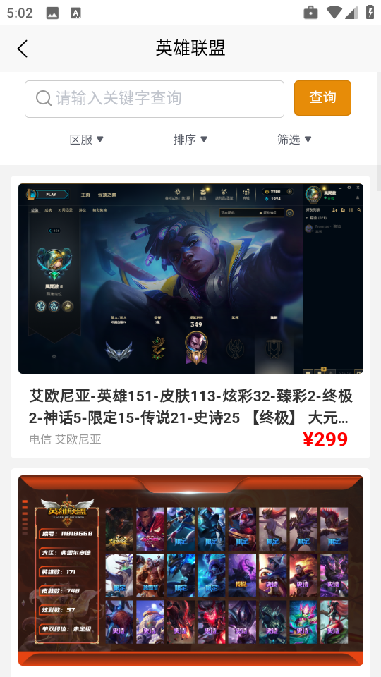 4、任意选择一款热门游戏的账号,这里小编以“英雄联盟”游戏为例。