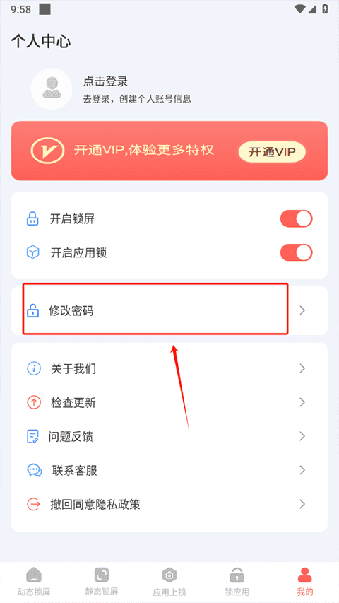 1、首先在我的界面点击修改密码