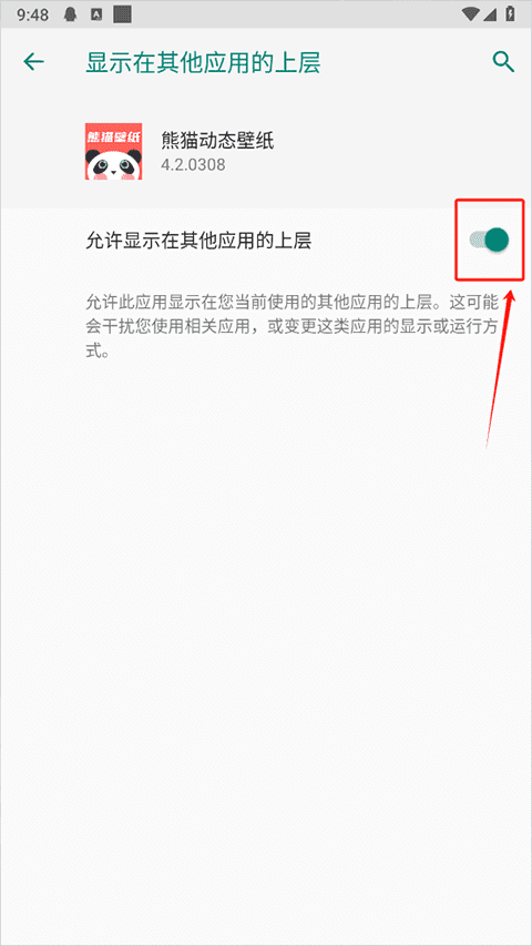 3、然后根据要求打开允许在其他应用的上层功能