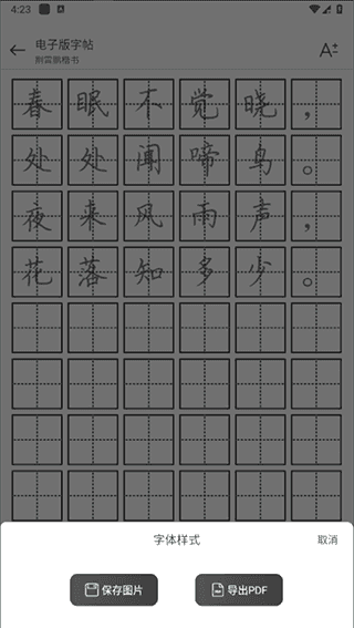 4、生成电子字帖,可生成电子字帖在Kindle等设备上使用,也可以照着手机练字。