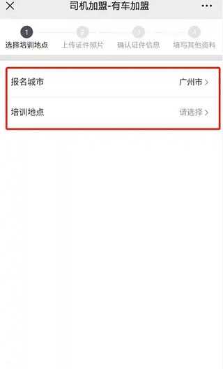 4、登录成功能过后,即可进入信息填写界面,根据系统提示选择对应的培训地点,然后点击下一步;