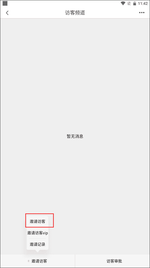 2、这项功能弹出了三个列表下拉:邀请访客、邀请访客vip、邀请记录,选择红色框框选中的那个;