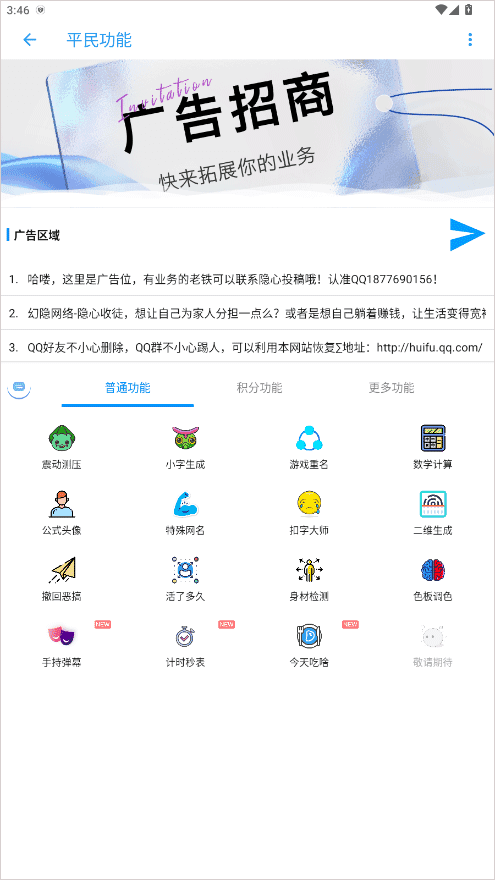 2、在首页,点击平民功能,您可以发现很多的实用功能