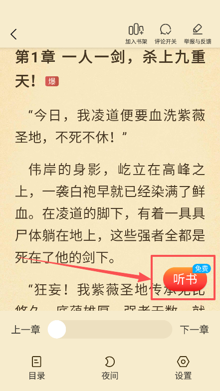 1.点开想看的小说进入到阅读页面,点击右上角的“加入书架”。