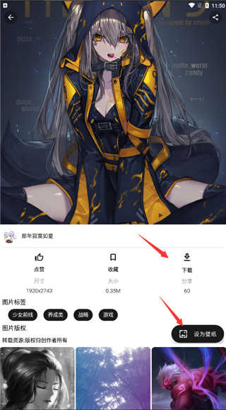 5、这里我们可以下载图片,也可以直接设置壁纸;