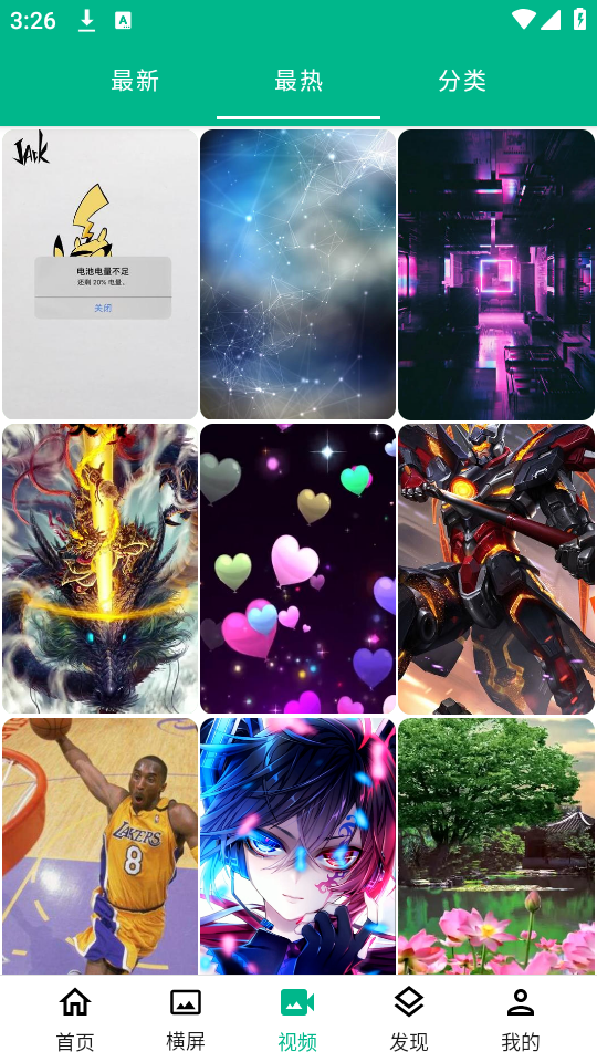 3、在下方还有可以你需要的壁纸需求,有视频的、横屏的;