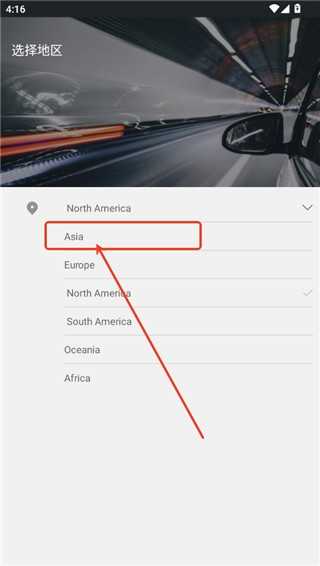 1、在手机上安装并打开软件,进入界面后,根据需要设置地区。点击界面上的选项,选择合适的区域。