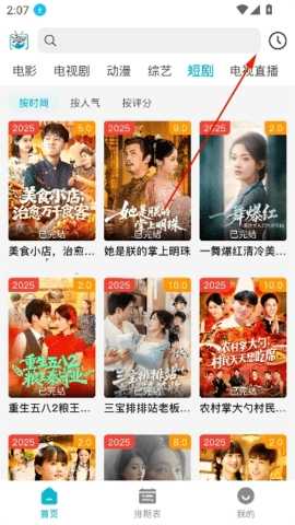 1、首先点击右上方的历史。