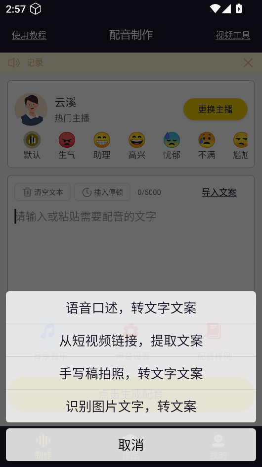 自助配音是一款创新易用的音频制作工具,专为视频创作者、广告制作人、教育工作者及广大配音爱好者设计。提供海量音色模板与多语种支持,满足影视解说、广告配音、内容创作等多样化需求。平台开放会员全功能免费使用,内含百种主播声线及多国语言库。用户可自由上传音频进行剪辑,一键完成音源替换、背景音乐合成等专业操作。支持众多不同类型的背景音乐,让用户能够免费自由进行挑选。