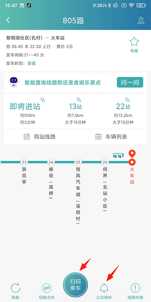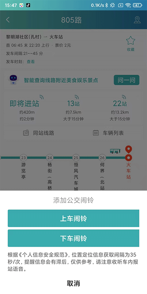 4、添加上车/下车闹铃,不错过站点;