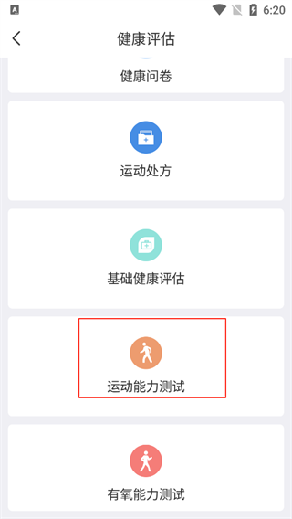2、这边以健康评估为例点击,选择运动能力测试