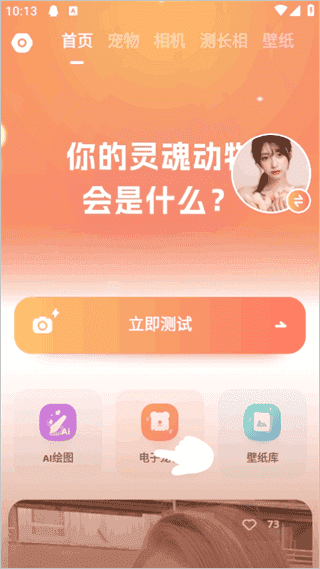 1、进入灵魂宠物动物系长相测试app后点击【立即测试】