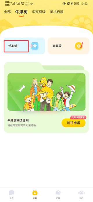 一、打开奇奇学app,在计划页面的牛津树中点击绘本馆