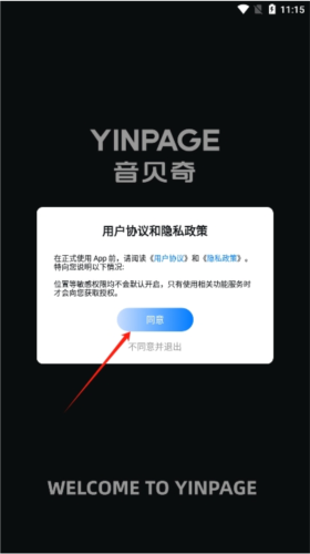 2、进入后阅读并同意音贝奇蓝牙耳机的用户协议
