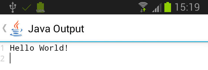 为了运行你的应用程序,AIDE 会先编译它。您将看到一个弹出窗口,其中显示了构建进度。完成后,将弹出一个新活动,其中包含一个用于 Java 应用程序的输入/输出的控制台。应用程序本身在单独的进程中以沙盒形式运行。