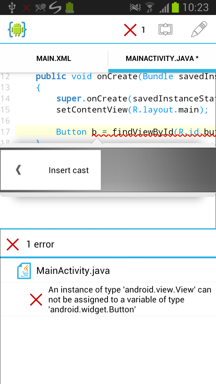 它还将键入时为可能的错误添加下划线。当您长按错误时,AIDE 允许您选择可能修复错误。