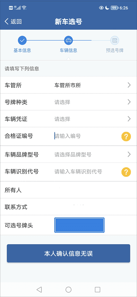 最后,填写车辆信息,找到并点击“本人确认信息无误”按键后即可开始摇号。