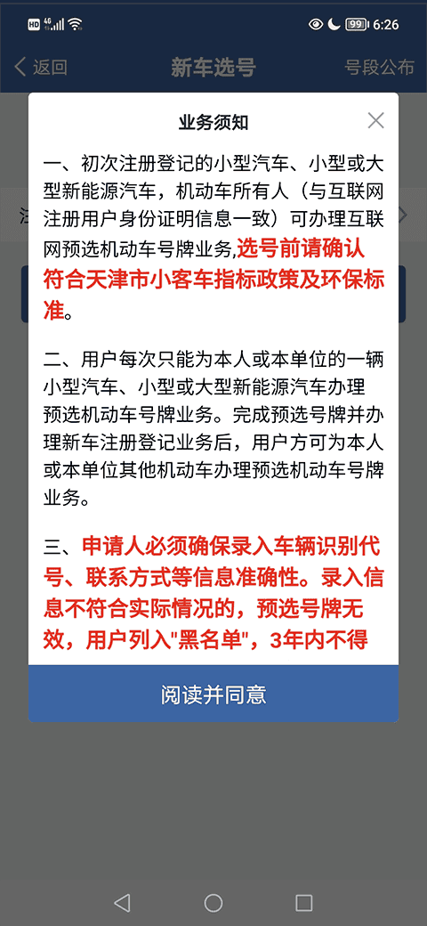 在业务须知弹窗下方等待读秒结束,找到并点击“阅读并同意”按键;