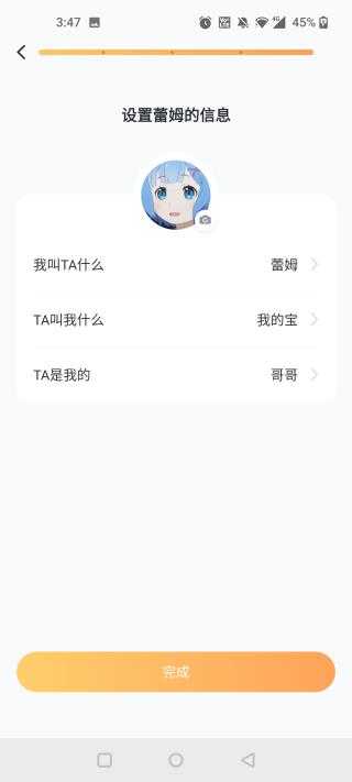 4、再设置与人物关系,ta叫你什么、ta是你的,最后点击完成人物就添加成功了。