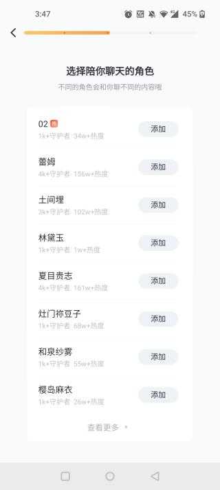 1、作为一款陪伴类型的聊天游戏,你选择自己喜欢的角色来陪你聊天。