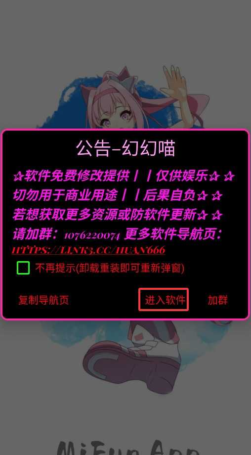 1、启动应用后点击公告弹窗的"进入软件"按钮,即可访问主界面。