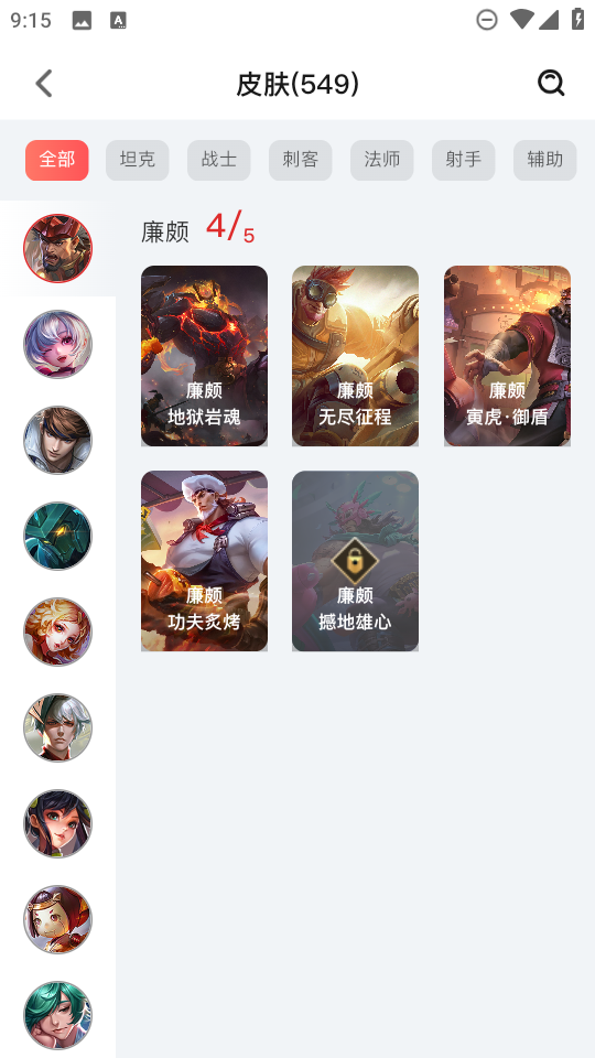 4、往下滑动,还可以看到该账号详细的皮肤数量。