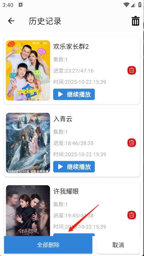 新蓝鹰怎么删除观看历史