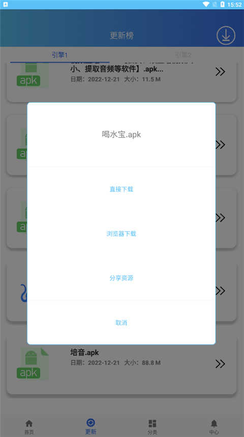 6、这里我们以喝水宝为例子,点击喝水宝apk我们即可直接下载,也可以选择浏览器进行下载,另外你还可以将资源分享给第三方小伙伴都是可以的。